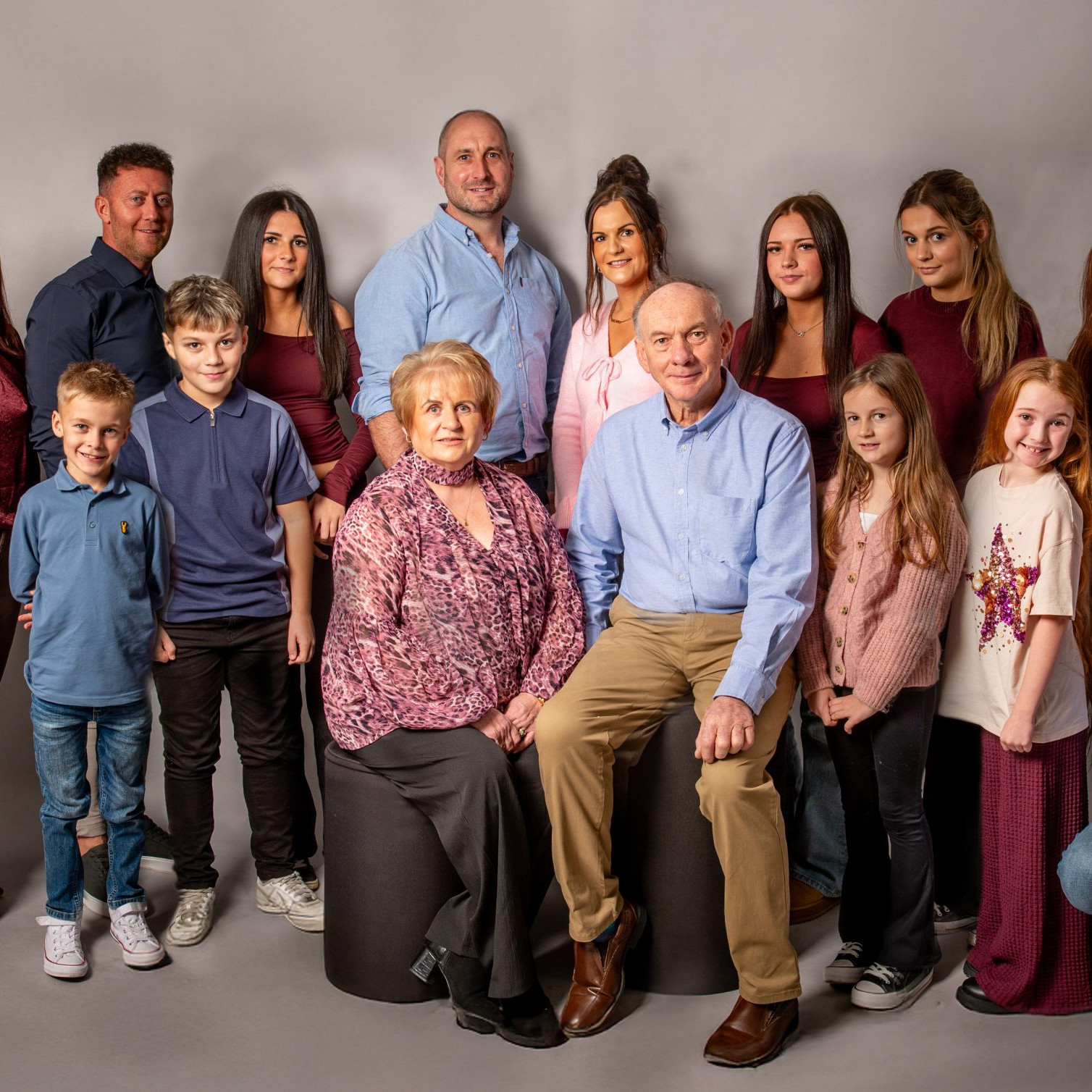 For family or group portraits we generally advise keeping everyone dressed in the same tones. We find that dark tones and long sleeved shirts/blouses work well and don’t date.